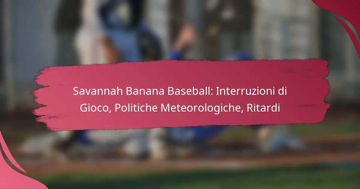 I ritardi durante le partite dei Savannah Banana possono verificarsi a causa di vari fattori, principalmente condizioni meteorologiche e interruzioni di gioco. Questi ritardi possono influenzare l’esperienza complessiva per i fan, richiedendo comunicazione chiara e strategie di gestione efficaci.
